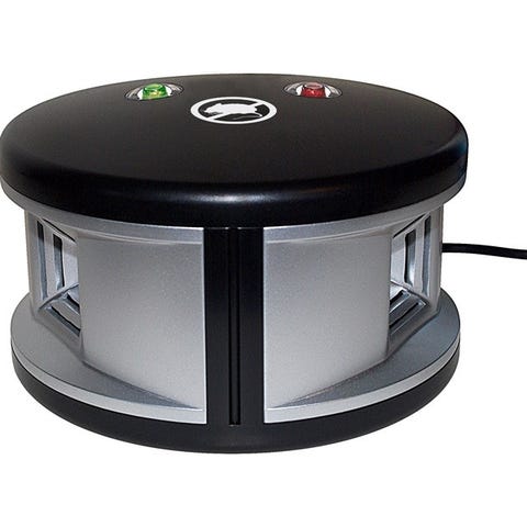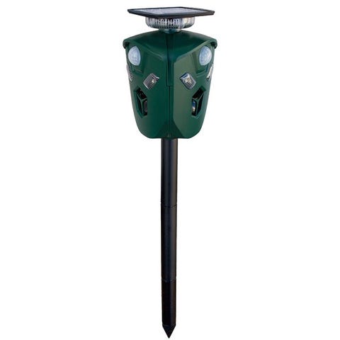 Ultralydsskræmmer, Mod katte. Udsender lyd som skræmmer katte. Se vedlagte billeder. Der er tilkøbt strømforsyning, så der ikke skal bruges batterier. Det er vist købt i Matas men ikke brugt, så kan ikke guide. Nypris 449 plus strømforsyning til 100. Fast pris - kan sendes for 50 med gls.