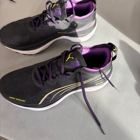 Puma løbesko i størrelse 37 med hvid og lyserød farvekombination. Skoene er designet til løb og løbning, velegnet til sportsbrug. De fejler ikke noget.