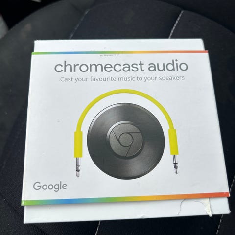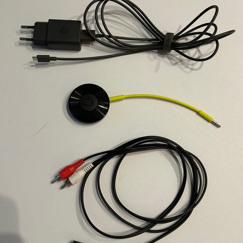 Google Chromecast Audio i sort. Inkluderer strømadapter og USB-kabel.