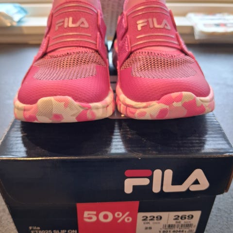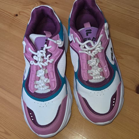 Fila børnesko til piger i størrelse 30. Skoene har en kombination af farver, herunder lilla, hvid og pink. Sælges i god stand og kun brugt 2gange indendørs. Byd gerne