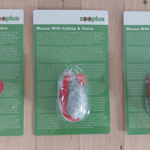 2 mus - kattelegetøj, der stadig sidder på karton, så de er gode som nye.