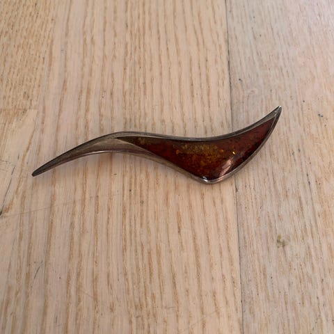 Sølvbroche . Sikkerhedslås, ingen stempler Måler 7x2cm.