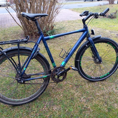 Brugt og som billederne viser en del rust. Kører fint.