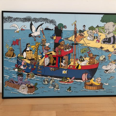 Det sødeste vintage Rasmus Klump tapet til børneværelset. Jeg har 4 ruller i ubrudt plastik. Det måler 0,53 *10m. Koster 75 kr pr rulle.