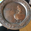 Dekorativ vægplade med skibsmotiv i relief. Pladen har detaljeret udsmykning langs kanten og et centralt motiv med sejlskib på havet. Egnet som vægdekoration i stue, gang eller sommerhus. Materiale og præcis størrelse er ikke angivet, men pladen fremstår som en kraftig, ornamenteret pyntegenstand til ophæng eller udstilling.