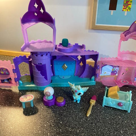 Oplev et eventyrligt slot, hvor figurer og ting bevæger sig ved hjælp af en magnetisk tryllestav. Slottet har farverige detaljer, små rum og søde figurer, der gør legen levende og sjov. Perfekt til børn, der elsker fantasi og interaktiv leg!