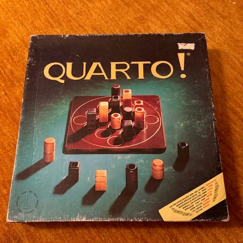 Quarto, brætspil, Komplet og helt som nyt, æsken lidt slidspor. Udgivet i 1991. Her med plastic brikker
