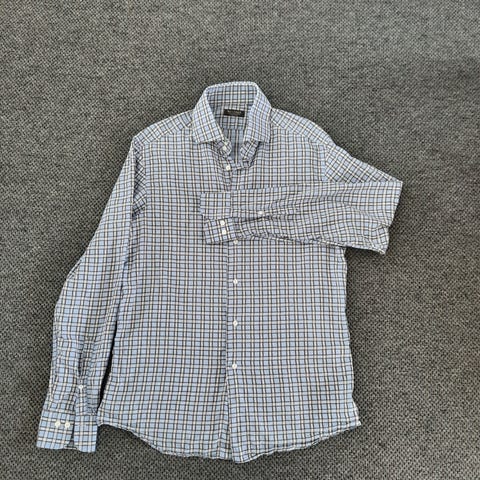 Blå slim fit denim skjorte fra italienske Aglini. Str. 42, hvilket her svarer til medium. Skjorten er i rigtig fin stand.