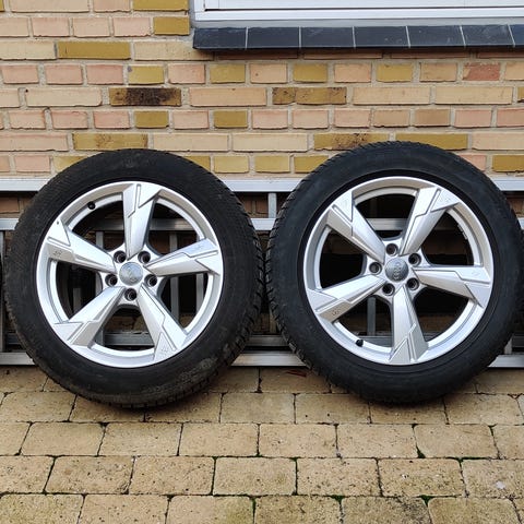 Gode alu vinterhjul med nokian dæk 225 60 r17. Har siddet på Audi A6 c8, men skulle passe på flere Audi og BMW modeller. A6 mærkerne kan varmes af, hvis man ikke ønsker den dekoration.