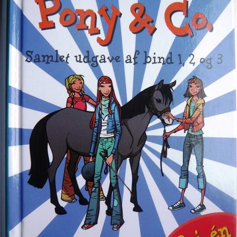 Pony & Co. 1 - Pony & Co., Kirsten Sonne Harild, "Godt jeg har ridehjelm på, flyver det igennem mit hoved. Men det er kun en brøkdel af et sekund. Det er slet ikke slut endnu. Jeg bumper nemlig videre ned igennem folden skråt bag ved Tessas dundrende hove. Jeg bumper, jeg flyver, jeg bumper, jeg flyver. Og det er netop nu gået op for mig, at min fod sidder fast i stigbøjlen ..." Følg med i PONY & CO. En serie om tre vidt forskellige piger på 12-13 år og deres hverdag med heste, skole, drenge og hinanden. PONY (Karen) er en rigtig hestepige. Hun er meget omsorgsfuld over for sine veninder og ville gerne redde hele verden, hvis hun kunne. MAJA er bare god til alting. Hun kan ride, danse, fægte spille klaver ... Og så ved hun en masse om livets store mysterier. LISE har makeup, smart tøj og karaokeanlæg. Hun har den sjoveste fantasi - og så er hun vild med drenge. Læs mere om Pony & Co. i: Mission Maja