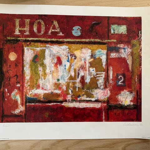 Kunst plakat, Kai Lindemann, motiv: Rød facade, b: 67 h: 55, Ny og ubrugt i paprør.