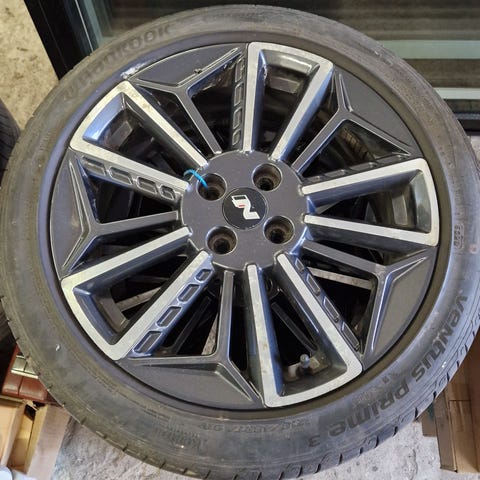 Et sæt som kommer fra en Hyundai I20N. Fælgene har en del ir og lidt skrammer. Monteret med vinterdæk. Indpresningen på fælgene er 54. Skriv elle ring. Ref nr S252