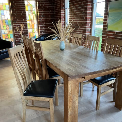 Stort spisebord sælges inkl. 6 grønne stole i velour