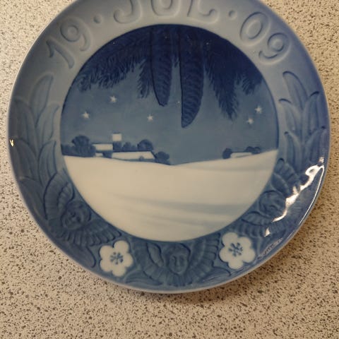 Royal Copenhagen Juleplatte 1941 Pyntet Tallerken Blå Hvid Porcelæn