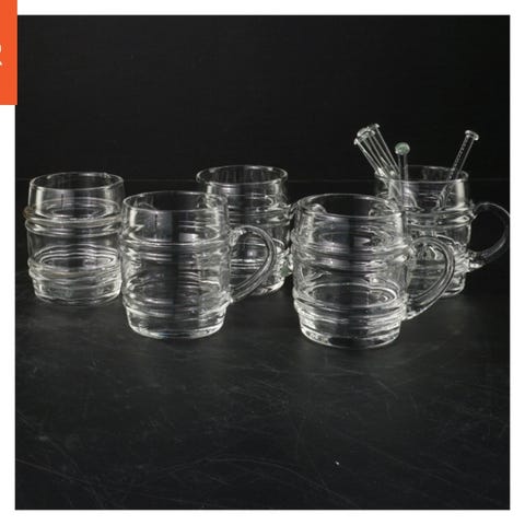 Sæt med fem lysegrønne krus i keramisk materiale. Krusene har en jævn overflade og hver især en stor hank for nem håndtering. Hvert krus har en diameter på 8,5 cm og en højde på 11 cm, hvilket gør dem velegnede til varme drikke. Den lysegrønne farve giver et friskt og moderne indtryk.