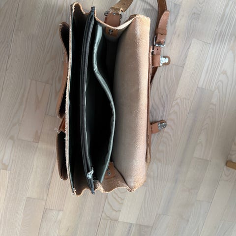 Virkelig flot udført kernelæder taske / mappe fra BREE med to inderlommer og indsatser i lys kernelæder til kuglepenne, tlf.,mm.