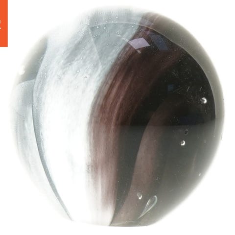Denne dekorative tunge kugle har en diameter på 8 cm og er fremstillet med en unik mønstret overflade, der primært består af grå og sorte nuancer med en lysere, central kerne i blå. Kuglen kan bruges som et dekorativt element i hjemmet, der tilføjer et strejf af elegance og farve til enhver indretning. Meget anvendelig som brevpresse eller til at holde papir/aviser nede pga dens tunge vægt. Materialet er marmor-granit, hvilket giver bolden en skinnende og reflekterende kvalitet, der vil fremhæve dens detaljerede mønster yderligere.