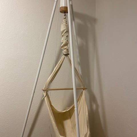 Slyngevugge fra babynohr i farven dusty sky. Brugt i cirka 10 måneder.