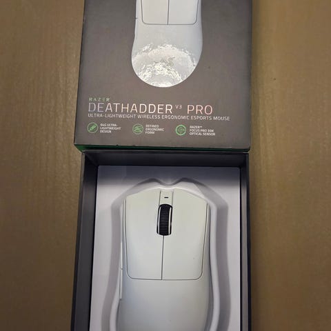 Razer DeathAdder V3 Hyperspeed trådløs gaming mus med ultralet design. Der er påsat Corepad Skatez på musen og der følger 1 extra sæt med Corepad Skatez Pro 313.