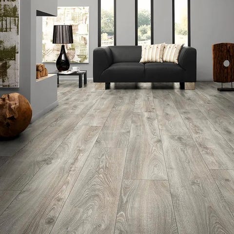 Eksklusivt laminatgulv i Highland Sølv – rustikt plankelook med V4-fas og 3D/synkrontryk for et realistisk og elegant udtryk 💎 Slidstærkt og stabilt til både bolig og erhverv. Nem montering med 5G kliksystem!