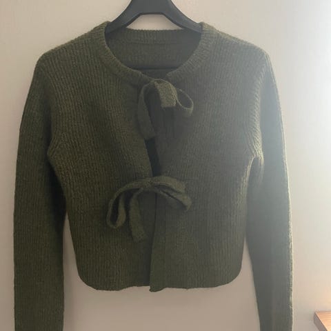 Lang cardigan i babyblå. Fremstillet i blødt materiale med knaplukning foran. Langærmet design med ribstrikkede kanter ved ærmer og halsudskæring.