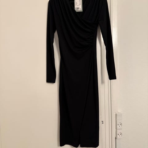 Kort satin kjole med offshoulder ærmer. Aldrig brugt