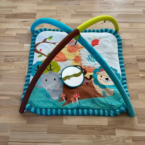 Farverigt Baby legetæppe med motiver af fugle og blomster. Legetæppet har to buer som kan tages af og underlag kan vaskes.