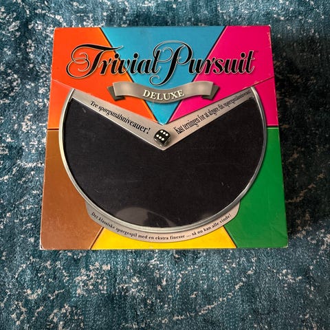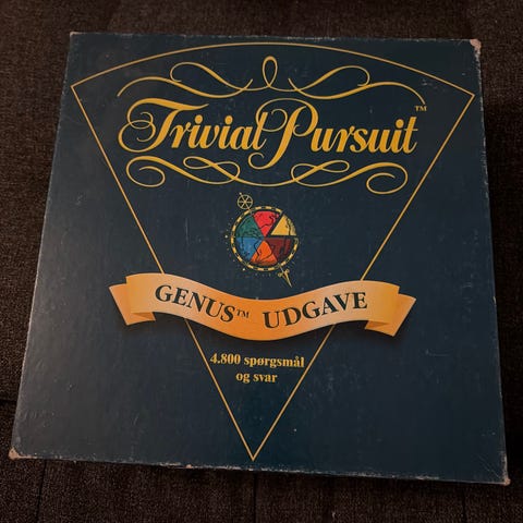 Trivial Pursuit 90'erne brætspil med spillebræt, spillekort, spillebrikker og terning. Spillet indeholder spørgsmål om 1990'ernes kultur og begivenheder. Inkluderer original æske og instruktioner.