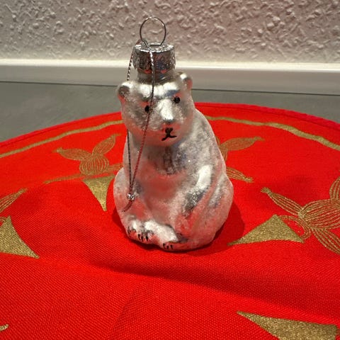 Isbjørn med juletræ med lys i 48 cm høj