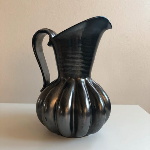 Flot MA kande i en sjælden blå farve, den er hel og fin med originalt håndtag, virkelig flot. Selve keramikdelen er 12 cm og med håndtag er den 21 cm. En sjældenhed.