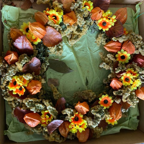 Kunstig dørkrans med solsikke blomster - diamanter 30 cm