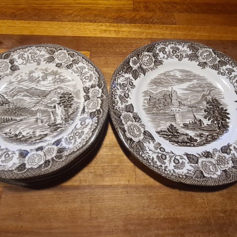 6 middagstallerkner, Engelsk, Lochs of Scotland.