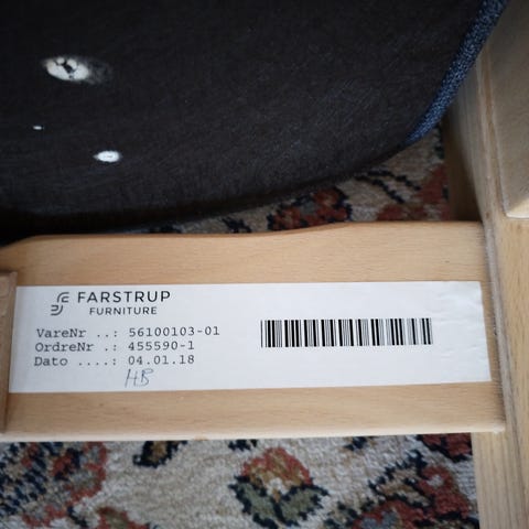 Træstellet er i massiv bøg lak og har lidt skønshedsfejl i form af små ridser/mærker.