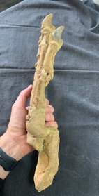 Kæmpe hånd fra en hulebjørn (Ursus spelaeus). Hånden er 30 cm i længden og 23 cm bred.