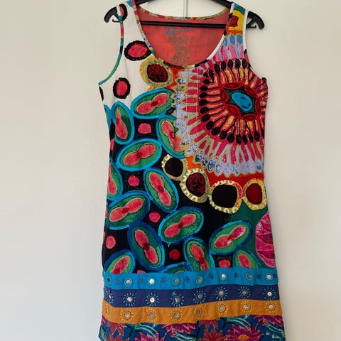 Mangler at blive båret i stedet for at hænge i skabet søger ny ejer. Fra spanske Desigual købt i London. Tætsiddende kjole.