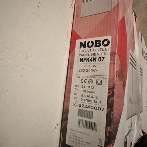Nobo NFK4N-2 elektrisk panelovn med frontpanel, modelnummer 02-2304. Driftsspænding 230-240V. 2000 Watt Farve: hvid. Designet til opvarmning med elektronisk styring. Produktet inkluderer brugervejledning og installationsinstruktioner. Måler 133 cm lang og højden 40 cm med termostat til uge programmering. Overskud fra byggeri som er afsluttet.