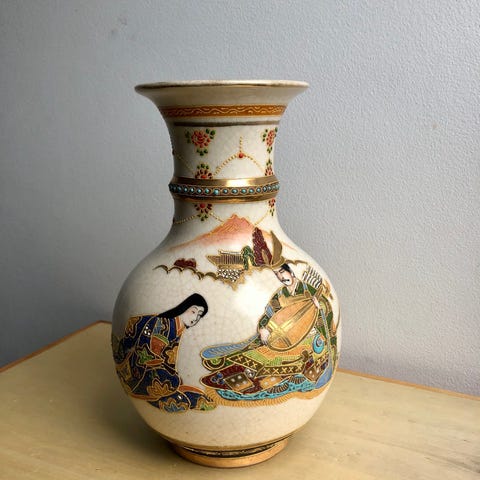 Sælger ud af arvestykker. Vasen er håndmalet med Japanske motiver.