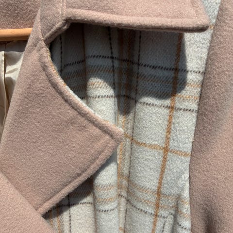 Frakke, str. 36, Munderingskompagniet / MDK, Multi, Mix, Ubrugt, Multi mønstret anderledes frakke ala trench coat facon med bælte, to skrå forlommer og slids bagpå