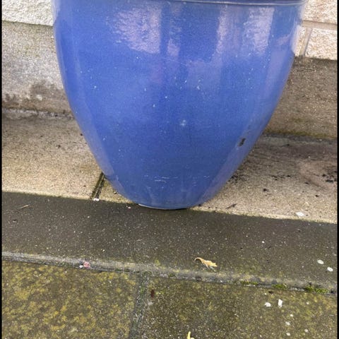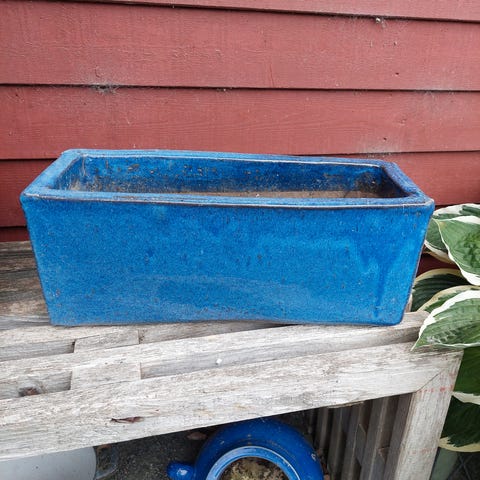 Blåglaseret havekrukke 29 cm i diameter 22 cm høj