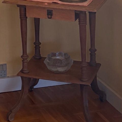 Dekorativt lille bord med fine detaljer og opbevaringsskuffe. Perfekt som sidebord eller plantebord.
