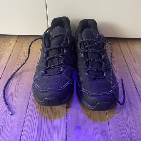 Salomon vandresko /sneakers i størrelse 44. Skoene designet til alsidig brug. Materialet og konstruktionen er egnet til udendørs aktiviteter og giver god støtte og komfort.