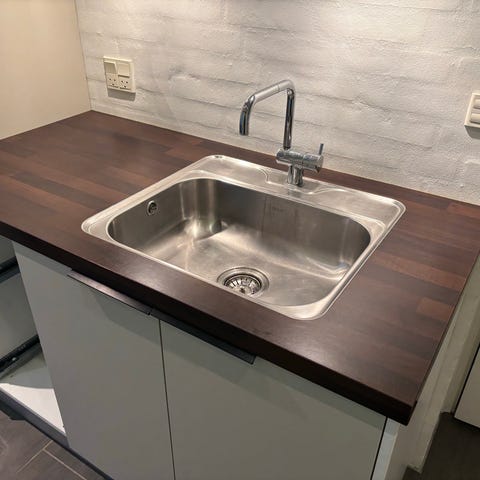 Har aldrig været monteret, fejlmål. Mål: mod væg ved vask 179,5 X 112,5 Dybde 60 tykkelse 3 cm