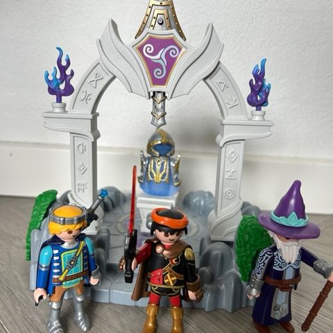 Playmobil 70223 temple of time - sættet inkluderer en dekorativ portal og tre figurer med tilbehør som stave og våben. Materiale: plast. Egnet til børn 8+. Sættet er komplet incl æske, men det ene sværd har tandmærker.