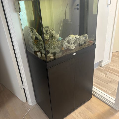 Akvariet har været brugt til rejer og der er tilkøbt materiale til pumpe for at rejesikre dette værdi af 500 kr.
