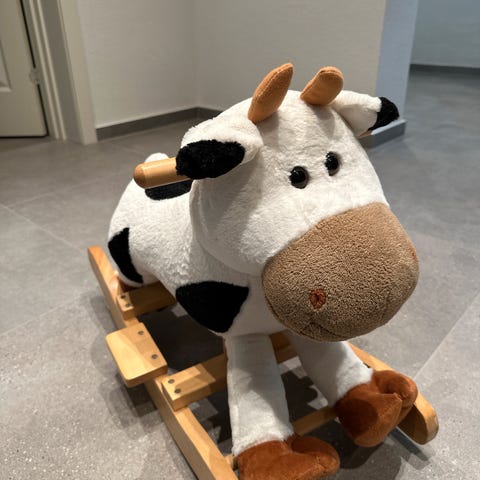Den skønneste gyngehest med lyd. Den er blød og lækker og har ikke været brugt ret meget og fremstår i god stand.