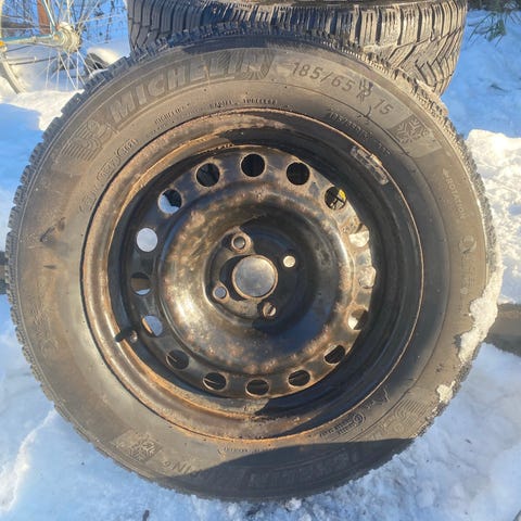 4 stk. Michelin vinterdæk på stålfælge. Dækkene er fra 2022 og har kørt 3 vintre. Omkring 6 mm mønster tilbage. ET35