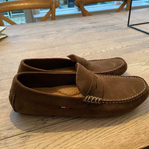 Tommy Hilfiger Loafers og sejlersko i størrelse 45. Skoene er lavet i mørkeblå ruskind og har en klassisk loafer design. Egnet til både casual og semi-formelle lejligheder.