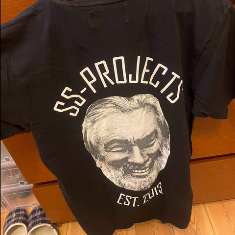 ONLY 2024 Smutkiew T-shirt i størrelse L, farve blå. T-shirten har tryk på front og ryg med tekst og grafiske elementer. Fremstillet til mænd.