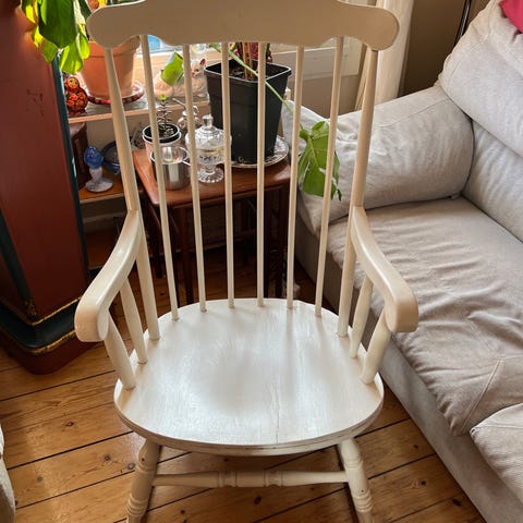 Vintage hvid gyngestol med blødt sædehynde i god stand