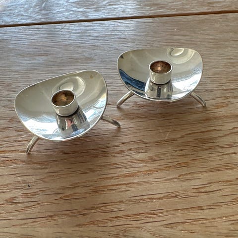 8 små fine lysestager i rokoko stil - fra 50erne.